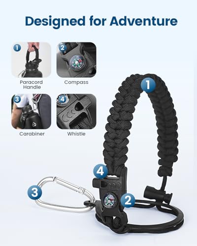 Adventure-In a position Paracord Deal with: The outside-In a position paracord Deal with features a carabiner, compass, and whistle, making this large water bottle ideal for camping, hiking, or cycling. Easy to clip and carry wherever you go.