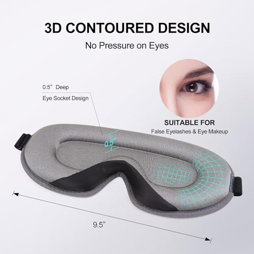 Eye Mask for Sleeping, 3D Contoured Cup Sleep Mask for Men Women, Soft Breathable Blackout Blindfold, Commute Eye Cover, Night Sleeping Mask with Adjustable Buckle for Side Sleeper