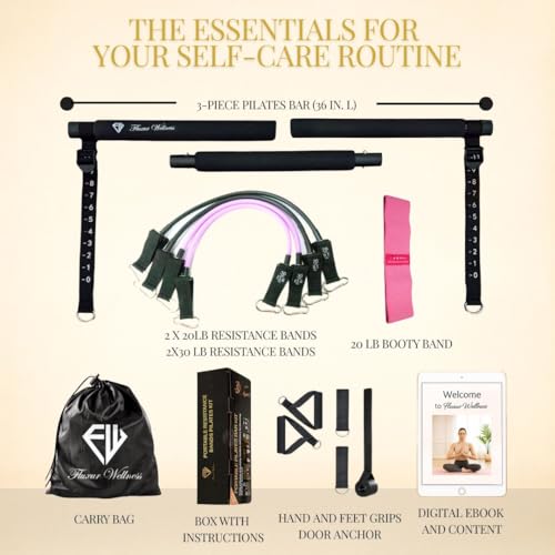 Fluxur Wellness Pilates Bar Kit with Resistance Bands for Women – Adjustable Home Workout Set with Booty Band, eBook & More – Full Body Toning for Beginners & at-Home Fitness