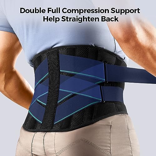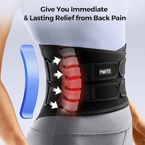 FREETOO Back Brace for Men Lower Back Pain with 7 Metal Stays, for Sciatica, Herniated Disc, Scoliosis and More Pain Relief! Breathable Back Support Belt for Women Work with Soft Pad, Lightweight
