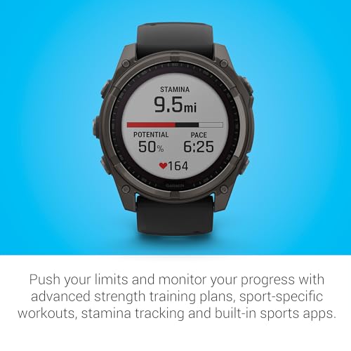 EXTENDED BATTERY LIFE AND PERFORMANCE TRACKING: With solar charging, enjoy up to 48 days of battery life in smartwatch mode and 149 hours in GPS mode under optimal conditions. Reinforce your performance with targeted strength training, real-time stamina tracking, and sport-specific workouts, all supported by advanced battery performance to keep you going through the toughest challenges.