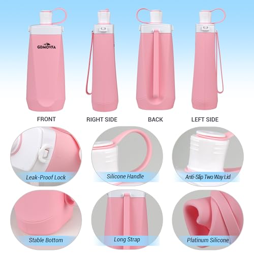 GDMOVFA Collapsible Water Bottles,20oz Reusable Silicone Foldable Water Bottle,Portable Leak-proof Travel Water Bottle for Traveling Camping Hiking Cycling Yoga Sports Outdoor (Pink)