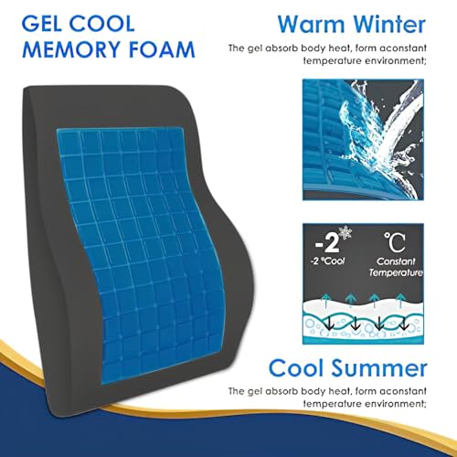 Gel Lumbar Support Pillow for Office Chair Car Gaming Chair Lower Back Pain Relief Back Support, Cooling Memory Foam Cushion for not stand the heat, 3D Mesh Cover Ergonomic Orthopedic Back Rest
