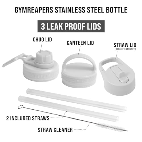 THREE LIDS INCLUDED – Gymreapers sports water bottle comes with 3 leak proof lid variations. Your water jug will include 1 straw lid, 1 chug lid, and 1 canteen lid for your insulated gym water bottle. Switch lids with ease, and don’t limit yourself to just 1 option for a lid.