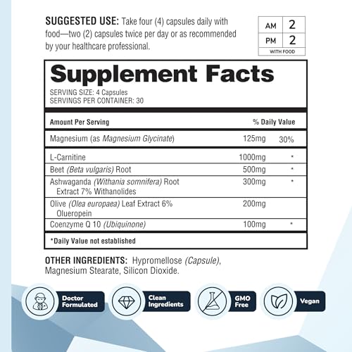 HealthyHeart Support+ 6-in-1 Heart Health Supplements with Ashwagandha, CoQ10, Beet Root, Olive Leaf, Magnesium & L-Carnitine, Made in USA, Doctor-Formulated –120 Capsules, 1 Month Supply