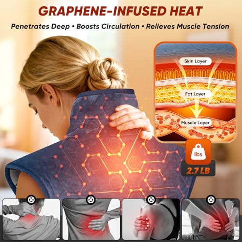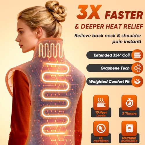 Heating Pad for Back Neck & Shoulders, 2.7lb Weighted Electric Graphene-Infused Heat Pad, Valentines Day Gifts for Her Him, Wearable Large 24″x35″ Fast Heating, ETL Certified, Gifts for Women Men Mom