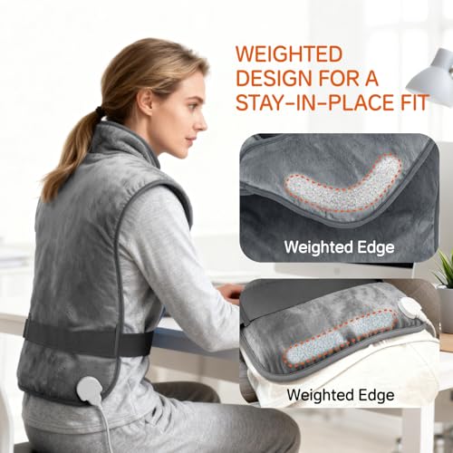 Heating Pad for Back, Neck & Shoulders, 24″x33″ Weighted Heat Wrap with 6 Heat Levels and 4 Timers, Auto Shut-Off, Full Back Pain Relief, Great Gift for Women, Men & Family