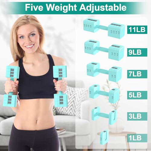 Hezeyferg 22LBS Adjustable Dumbbells Set, Hand Weights Sets with 5 Levels 3lb, 5lb, 7lb, 9lb, 11lb, Adjustable Weight Dumbbells for Women/Men Home Gym Full Body Workout