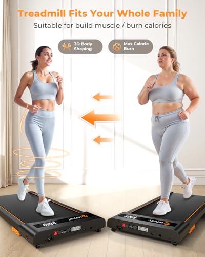 Space Saving for Small Spaces & Apartments: Effortlessly move our lightweight treadmill with wheels from bedroom to patio. No Assembly Hassles, The portable treadmill features a 4.13 in height for easy storage under beds or sofas, ideal for compact living and maximizing your workout.