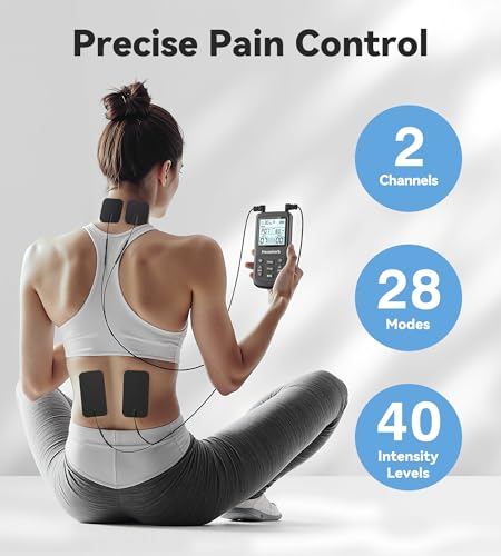 Personalized & Comfortable Therapy Experience – Features 40 adjustable intensity levels and 28 pre-set modes for gradual, non-jolting relief. Customize your session for up to 90 minutes, and choose from 2 or 4 electrode pads the use of dual channels for flexible coverage