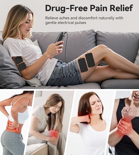Secure, Non-Drug Pain Management Option – Skip the pills. This TENS unit provides a drug-free, non-invasive solution to help relieve chronic or occasional body pain by stimulating your body’s natural pain-blocking mechanisms. Ideal for soothing sore muscles in the back, shoulders, legs, and more—without the side effects of medication
