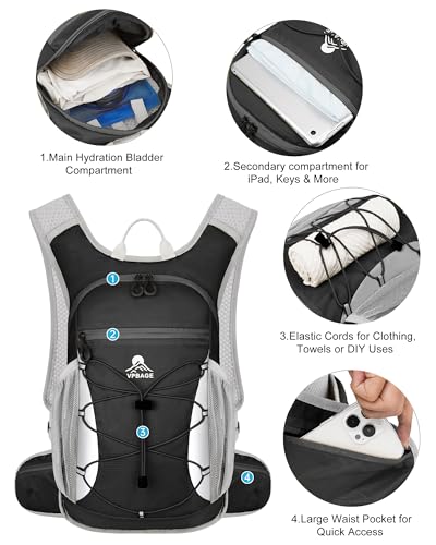 💖【Thoughtful Storage Space】This hiking hydration backpack features two large zippered waistbelt pockets for simple get admission to to your phone, snacks, and so on. Deepened side pockets fit water bottles or umbrellas perfectly, and its double-layer main pocket holds clothes, iPad, and so on