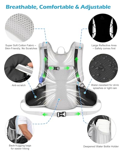 💖【Ultra-Lightweight with No Extra Burden】The hydration hiking backpack is made of durable and wear-resistant polyester fabric. Weighing only 8 OZ, it will not add extra weight to your hiking, exploration or other outdoor activities