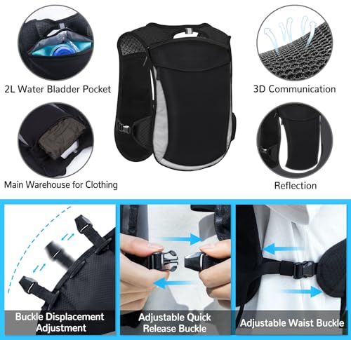 Hydration Backpack with 2L Water Bladder, Lightweight Running Vest for Women Men, Adjustable Straps, Multi-Pocket Water backpack, Breathable Running Vest for Hiking, Cycling, Climbing, Camping, Biking