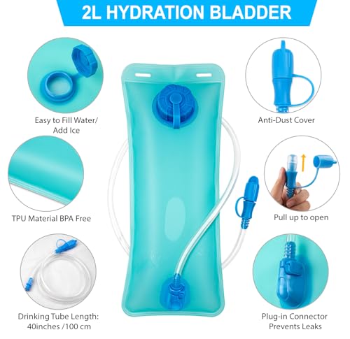 ✅ Hands-Free Hydration – Features a 2L BPA-free TPU water bladder with leak-proof technology, ensuring safe drinking during running, hiking, or cycling. The ergonomic bite valve allows easy sipping.