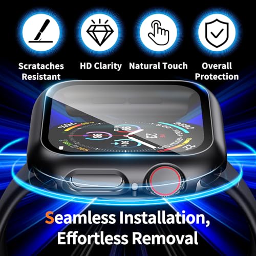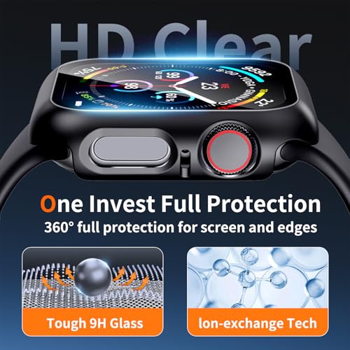 【Overall Protection】This Apple Watch hard case features a hard PC bumper with a built-in 9H tempered glass screen combination, providing your watch with comprehensive protection from day by day wear and tear, preventing scratches, bumps, and impacts.