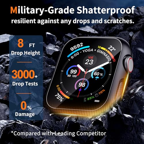 【Overall Protection】This Apple Watch hard case features a hard PC bumper with a built-in 9H tempered glass screen combination, providing your watch with comprehensive protection from daily wear and tear, preventing scratches, bumps, and impacts.