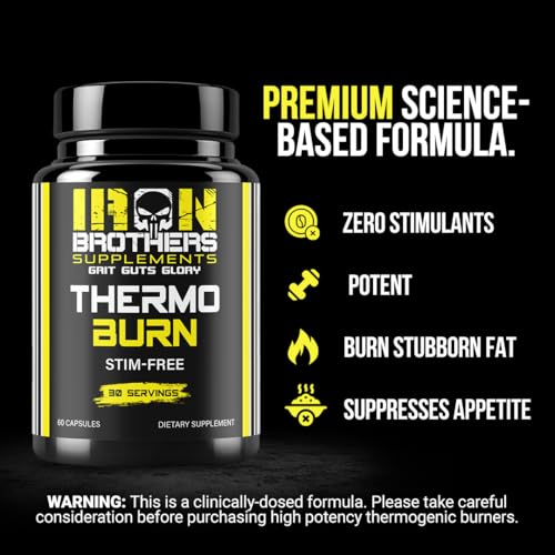 Iron Brothers Stimulant Free Fat Burner – Non Stim Thermogenic Metabolism Booster – Acetyl L-Carnitine, Grains of Paradise & Forskolin – Caffeine Free Weight Loss Support – 60 Capsules
