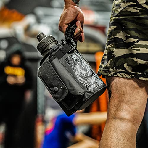 REMOVABLE COVER – Made from military grade rip and tear resistant fabrics. The nylon cover is removable, washable, and has two utility pouches for your cellphone, wallet, keys, and other belongings, and a removable paracord carry take care of. Covers will also be interchanged between all Iron Infidel 2 liter bottles.