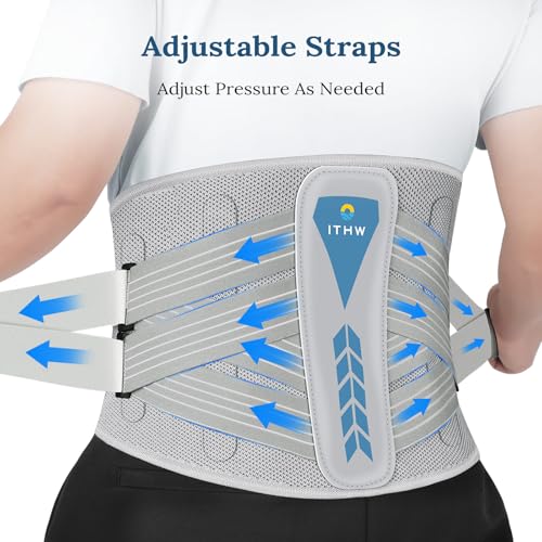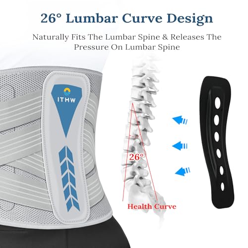 ITHW Adjustable 26° Ergonomic 3D Back Brace for Lower Back Pain Relief | Removable Stays, Breathable Mesh & Invisible Design, Office/Workout Use, Sciatica Relief/Herniated Disc, Unisex (Medium)