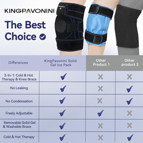 [3-in-1 Multi-Functional Knee Ice Pack] KingPavonini knee ice pack serves as a cold pack, hot pack, and knee make stronger brace—multi function; whether recovering from surgery, injury, or day by day strain, this versatile design adapts to your needs; use it for cold/hot therapy to reduce pain and swelling, then switch to a lightweight knee brace for ongoing make stronger all the way through movement; one product, continuous care