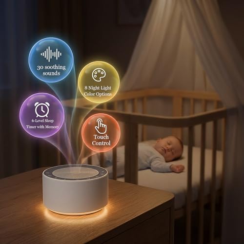 𝐂𝐮𝐬𝐭𝐨𝐦𝐢𝐳𝐚𝐛𝐥𝐞 𝐒𝐥𝐞𝐞𝐩 𝐒𝐨𝐮𝐧𝐝𝐬: Enjoy a carefully curated library of 30 high-quality sounds, including white noise, fan sounds, natural environments, and soothing lullabies. Each sound is engineered to be crisp, balanced, and consistent, helping mask disruptive noise and promote deeper sleep, focus, or relaxation.