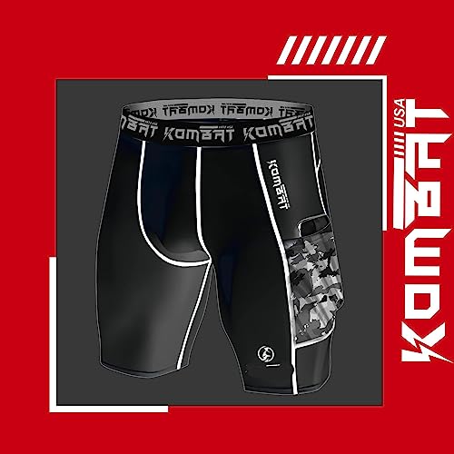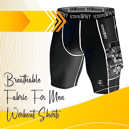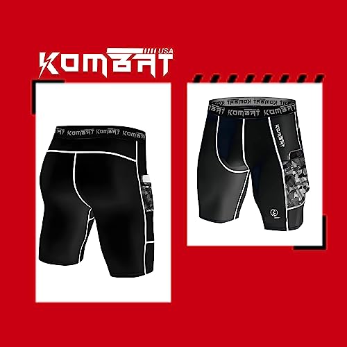 KOMBAT USA Compression Shorts Pro Grey and Black for Men | Running Shorts | Men Athletic Breathable Shorts with Pockets