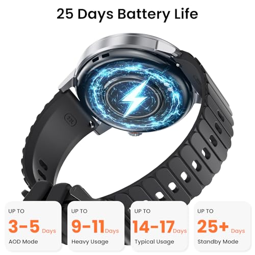 ➤【Ultra-Lightweight & 25-Day Power】The smart watches for women features featherlight (44.5g) Aluminum alloy case. Lasts up to 25 days of battery life—11 days with heavy use, and 5 days in AOD mode. Workout longer, charge less.