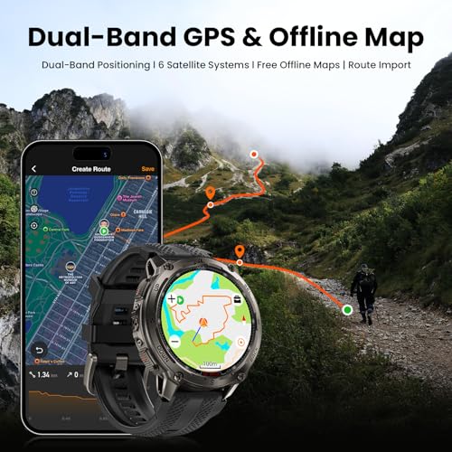 ➤【Offline Maps & Route Planning】The TANK T4 GPS smartwatch tracks your movements with outstanding accuracy, powered by an industry-leading dual-band GNSS positioning that connects to six satellite systems. Simply download offline maps and make a selection your route or destination point to run your favorite paths or explore unfamiliar trails.