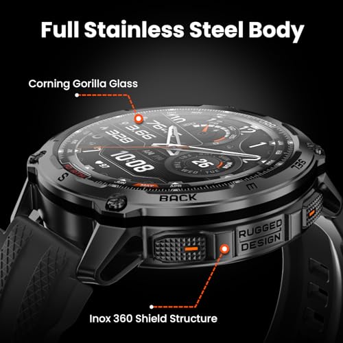 ➤【Military-Grade Toughness】Built with the Inox 360 Shield structure, this rugged smart watch features a durable stainless steel body engineered to resist extreme conditions—from deep freezes at -58°F to intense heat up to 158°F, Certified by 20 U.S. military-standard tests for proven reliability in the harshest conditions. The 1.43” AMOLED display, equipped with with a 3rd generation Corning Gorilla 9H double layer glass.