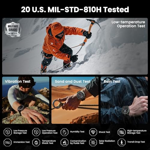 ➤【Military-Grade Toughness】Built with the Inox 360 Shield structure, this rugged smart watch features a durable stainless steel body engineered to withstand extreme conditions—from deep freezes at -58°F to intense heat up to 158°F, Certified by 20 U.S. military-standard tests for proven reliability in the harshest conditions. The 1.43” AMOLED display, equipped with with a 3rd generation Corning Gorilla 9H double layer glass.