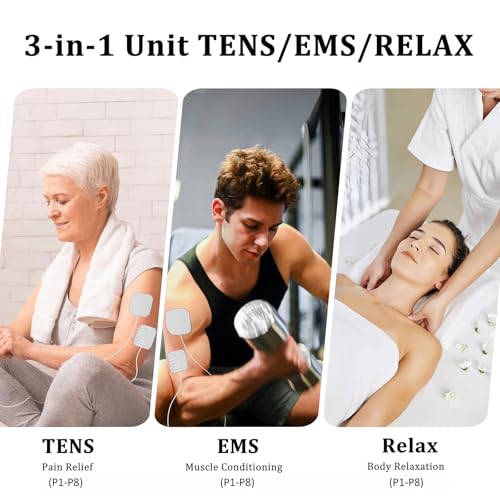 24 MODES & 40 INTENSITY – KRLCARE TENS machine is equipped with 8 TENS modes, 8 EMS modes and 8 relax modes. With 24 modes and 40 adjustable intensity level, you can easily find the most suitable mode and intensity for yourself. It is efficient for kinds of body pain relief and muscle spasms, such as: arthritis, cervical spondylosis, sports injuries, muscle spasms and period pain;