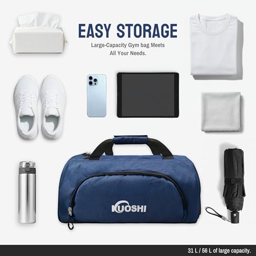 KUOSHI Gym Bag for Men & Women with Shoe Compartment & Wet Pocket, 31L Water Resistant Sports Duffle Bag with Quick-Access Pouch,Multi-Purpose Weekender Overnight Bag