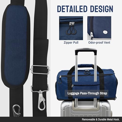 ✅Durability in Details: High-strength Oxford fabric construction, waterproof and tear-resistant. PEVA waterproof lining. Premium SBS zippers for smooth operation. Reinforced metal hooks. A couple of high-quality materials ensure the durability of this crucial gym bag.