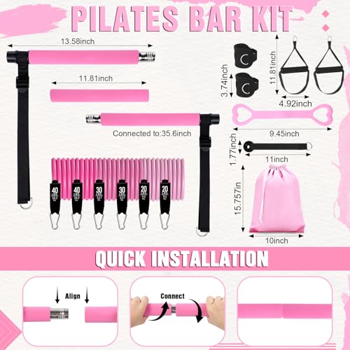 Thoughtful Gift for Fitness Enthusiasts: this complete Pilates bar set makes an ideal gift for health-conscious friends, members of the family, or fitness instructors; Its stylish pink design and comprehensive functions make it nice for birthdays, holidays, or as a daily health gift