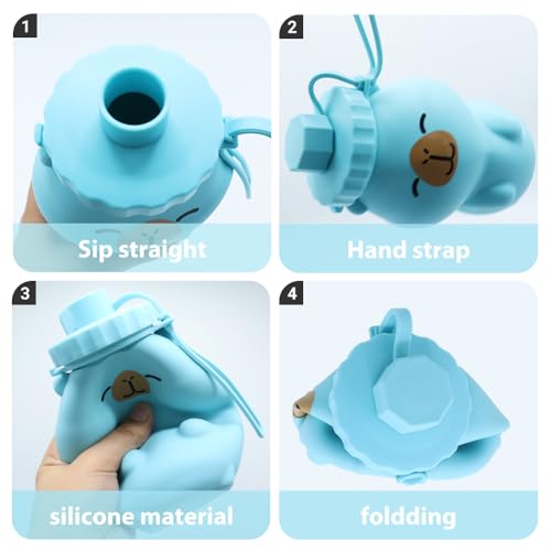 【Cute Animal Design】This collapsible silicone water bottle features a cute capybara – inspired shape, making it a charming and eye – catching accessory. Whether you’re at the gym, on a camping trip, or just going about your daily routine, this unique design is eye-catching.