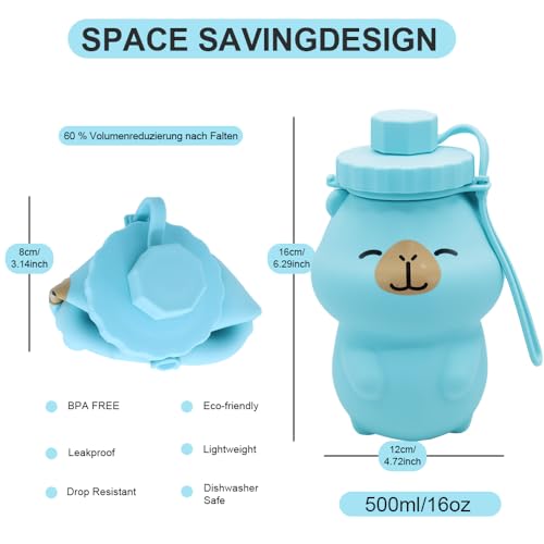 【Cute Animal Design】This collapsible silicone water bottle features a cute capybara – inspired shape, making it a charming and eye – catching accessory. Whether you’re at the gym, on a camping travel, or just going about your daily routine, this unique design is eye-catching.