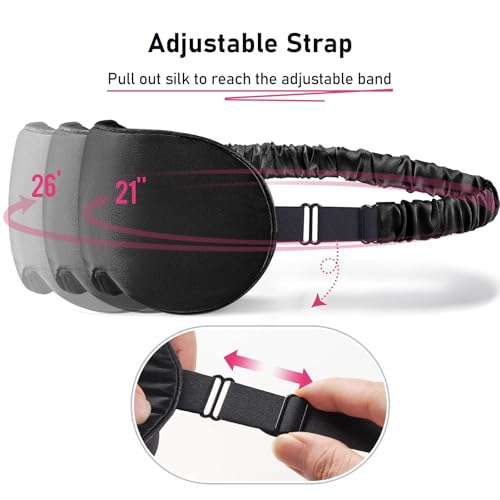 Adjustable Strap: Our elastic buckle strap covered with 100% Mulberry silk on both sides, making it so comfy on your head, and doesn’t tangle/stick your hair unlike other masks can also be easily adjusted from 21 inches to 26 inches to fit all different head sizes—men, women, and kids