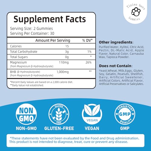 BHB Gummies: Tinies bers magnesium BHB gummies contain bhb 1,000mg per serving. BHB is 1 of 3 ketone produced by fat metabolism, accounting for 78%, and as an alternative energy source when our body lacks glucose.