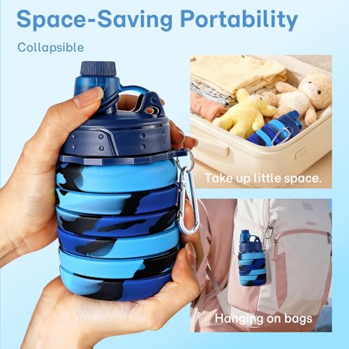 MAKERSLAND Collapsible Water Bottles for Travel, Foldable Sports Water Bottle for Kids, Reusable Water-proof Silicone Water Bottles with mountaineering Buckle for Camping Hiking Holiday