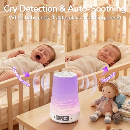 【AI CRY DETECTION & AUTO RESPONSE】AI cry detection turns on your preset light and sound combo when crying is detected, offering hands-free enhance and smoother midnight care