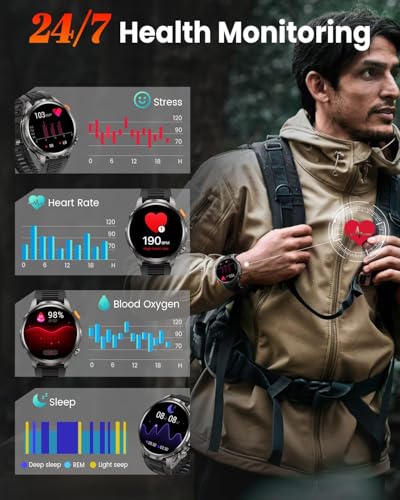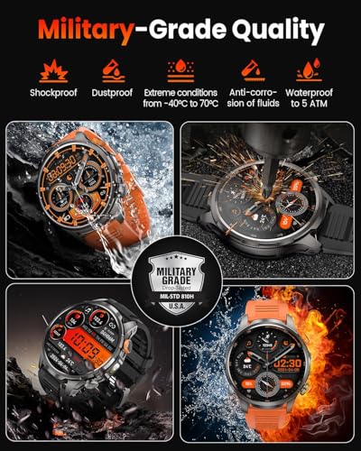 Built To Last And Withstand – BANLVS Tactical smart watch is built for among the best performance wherever the trail takes you, from frozen mountain peaks to dusty deserts. Military watch supports 187.96°F heat resistance, -82°F cold resistance, 50m waterproof, 50m drop and shock resistance, 150 hours in a salt spray environment, and with anti-magnetic function