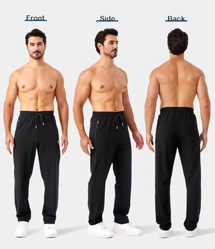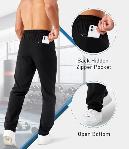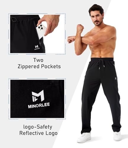 Minorlee Mens Joggers with Zipper Pockets Open Bottom Sweatpants for Men 3 Pack Lightweight Track Pants Men for Workout,Gym