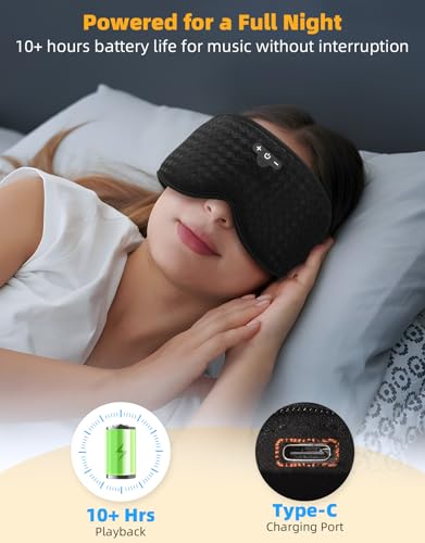 Enhanced Audio and Long-Lasting Battery: Immerse yourself in HD stereo sound that enhances relaxation and comfort. With a powerful battery providing up to 10 hours of playtime on a quick 1-2 hour charge, this sleep eye mask ensures uninterrupted rest all through the night (Adjust the headphones to align perfectly with your ears for ultimate listening experience)