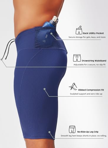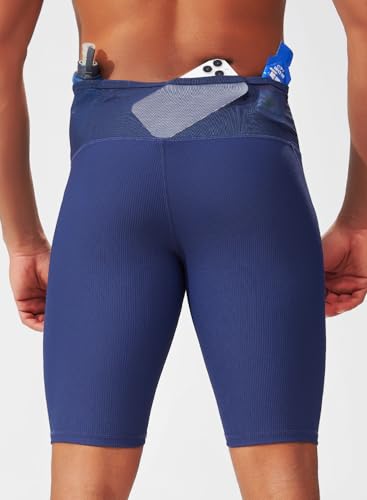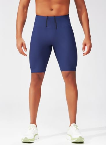 MIZOK Mens Running Half Tight Compression Short Gym Workout Bike Shorts with Built-in Phone Pockets