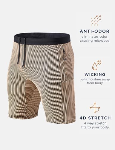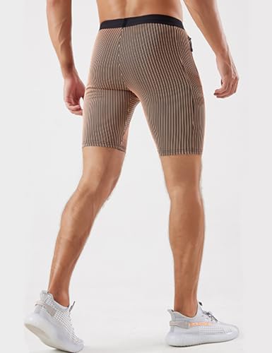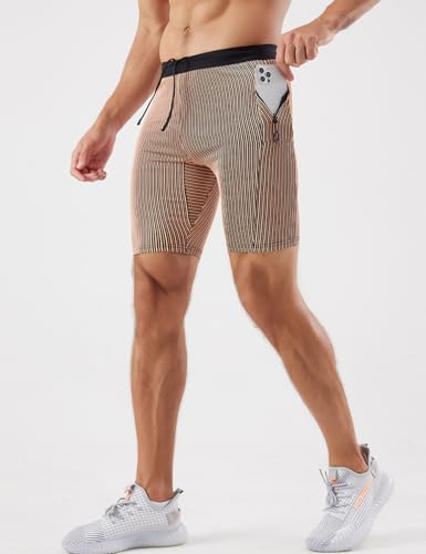 MIZOK Men’s Stripe Performance Compression Workout Shorts Tight Gym Athletic Shorts with Pockets