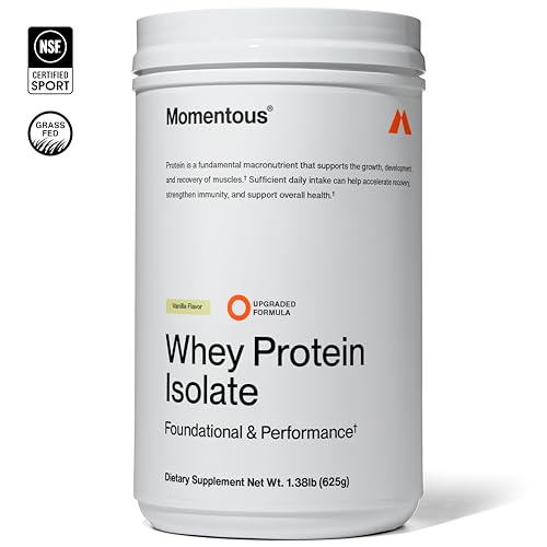 Momentous Essential Grass-Fed Whey Protein Powder – 20 g Whey Isolate Protein – NSF Certified for Sport – Gluten-Free – 25 Servings for Essential Everyday Use – Vanilla – Package May Vary