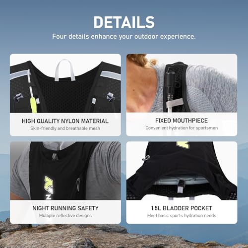 N NEVO RHINO Running Vest,Hydration Vest 5L with 1.5L Water Bladder,Lightweight Hydration Pack Water Backpack for Hiking Race