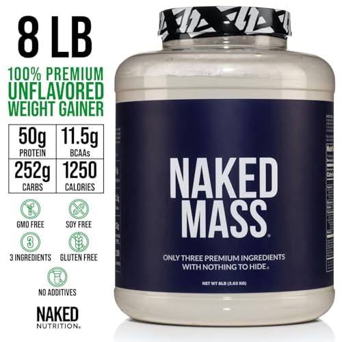 NAKED Mass – Natural Weight Gainer Protein Powder – 8 LB Bulk, GMO Free, Gluten Free & Soy Free. No Artificial Ingredients – 1,250 Calories per Serving