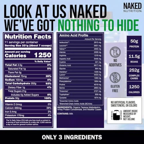 BEST WEIGHT GAINER SHAKES AND RECIPES: Our unflavored super mass gainer protein powder is flexible for making smoothies and recipes. Spice up calories and give your body optimum nutrition by adding Naked Mass to homemade protein bars, shakes, and more.